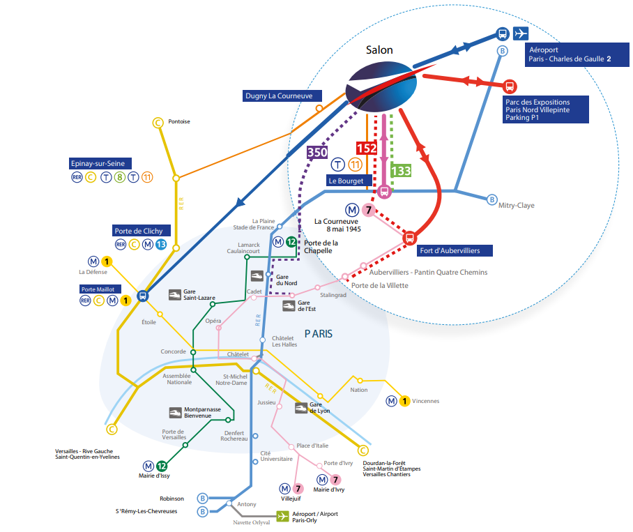 M7 - Fort d'AubervilliersPuis empruntez la navette gratuite qui vous déposera Porte L |